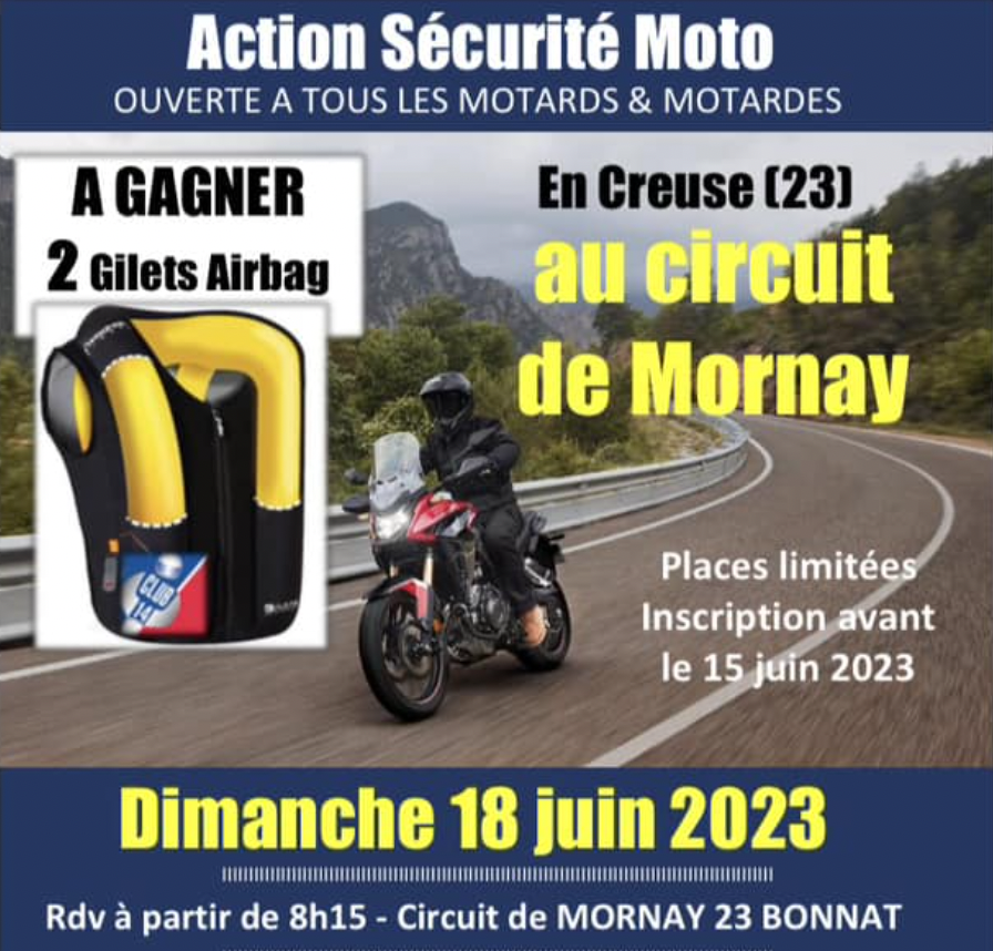 Une Opération de Sécurité Routière se déroulera le dimanche 18 juin 2023 au Circuit de Mornay, commune de Bonnat.
